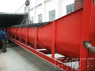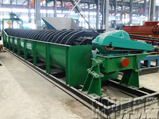 礦漿由槽的旁側給入。在槽的下部形成沉降分級面。粗顆粒沉到槽底然后被螺旋推向上方排出,在運輸過程中并進行脫水。未及沉降的細顆粒被表層礦漿攜帶流經溢流堰排出。分級過程與在分泥斗中基本相同。在分級槽下端有一個框架,框架的上部橫梁設有提升裝置,用于調節螺旋葉片距槽底的距離,并在停車時將螺旋軸抬起,以防止礦砂沉積埋住螺旋葉片。