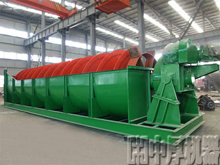 螺旋分級機按分級液面的高低可分為高堰式和侵入式(或沉沒式)兩種。高堰式分級機的溢流高于下端螺旋軸的中心,而低于螺旋葉片的上緣。分級液面長度不大,液面可直接感受到螺旋葉片上攪動作用,故適于粗粒級分級作用,分級粒度多在0.15mm(100目)以上。侵入式(沉沒式)分級機的下端螺旋葉片侵入在液面以上,分級面積大而又平穩,適于細粒級分級,分級粒度在0.15mm(100目)以下,它的溢流生產率高。此外,還有一種低堰式分級機,其分級液面低于下端螺旋軸承,液面很小,攪動作用大,主要用于含泥礦石的洗礦。